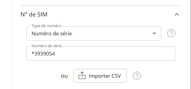 Vous pouvez charger un fichier CSV contenant une liste d’ICCID, de MSDIDN ou de numéros de série.