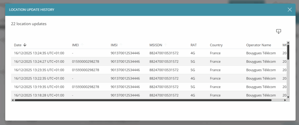 Even if there’s no ongoing data traffic, our interface gives your visibility on the last known network your SIM has attached to.